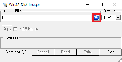 위 Win32DiskImager를 다운로드 받은 뒤, 압축을 풀고 실행파일을 실행합니다. (Win32DiskImager.exe)