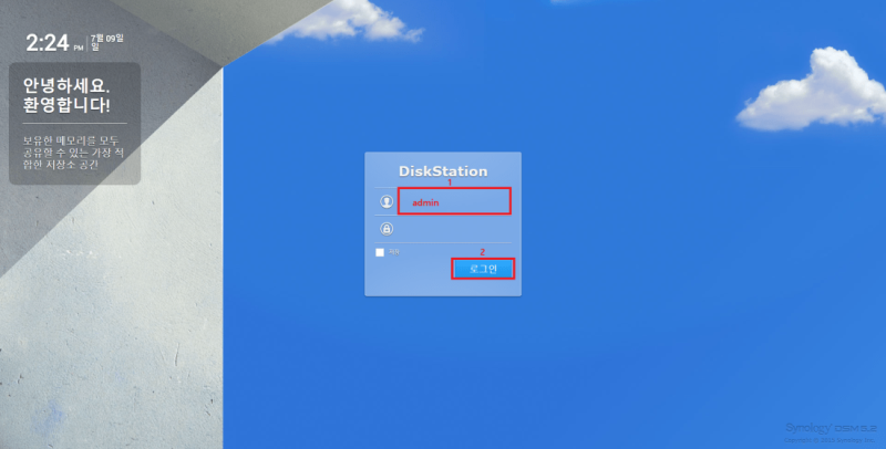 - 서버 이름 : 로그인 화면에 표시되거나 네트워크상에서 표시되는 NAS 이름 - 사용자 이름 : 로그인시 사용하는 아이디(admin은 관리자 계정이므로 추가 등록해야 함) - 패스워드/패스워드 확인 : 로그인시 사용하는 비밀번호