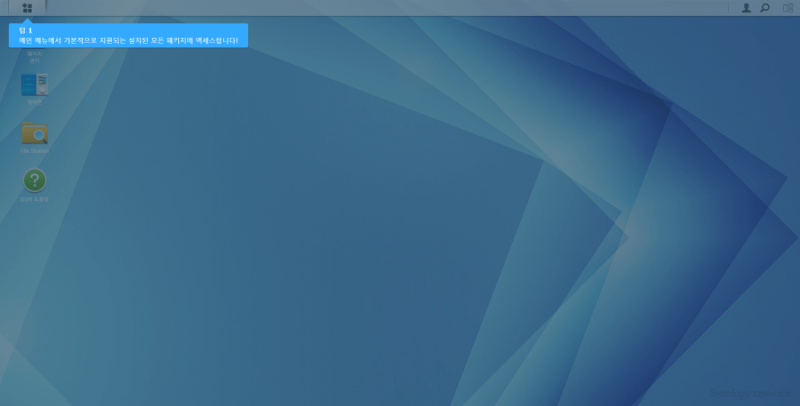 위와 같이 DSM 화면이 나타나면 설치가 완료되었습니다. 이제 외형상 일반 컴퓨터 또는 자작 NAS의 형태를 지니고 있지만, 시놀로지사의 OS를 사용함으로써 NAS 관리 및 활용을 편하게 할 수 있게 되었습니다.