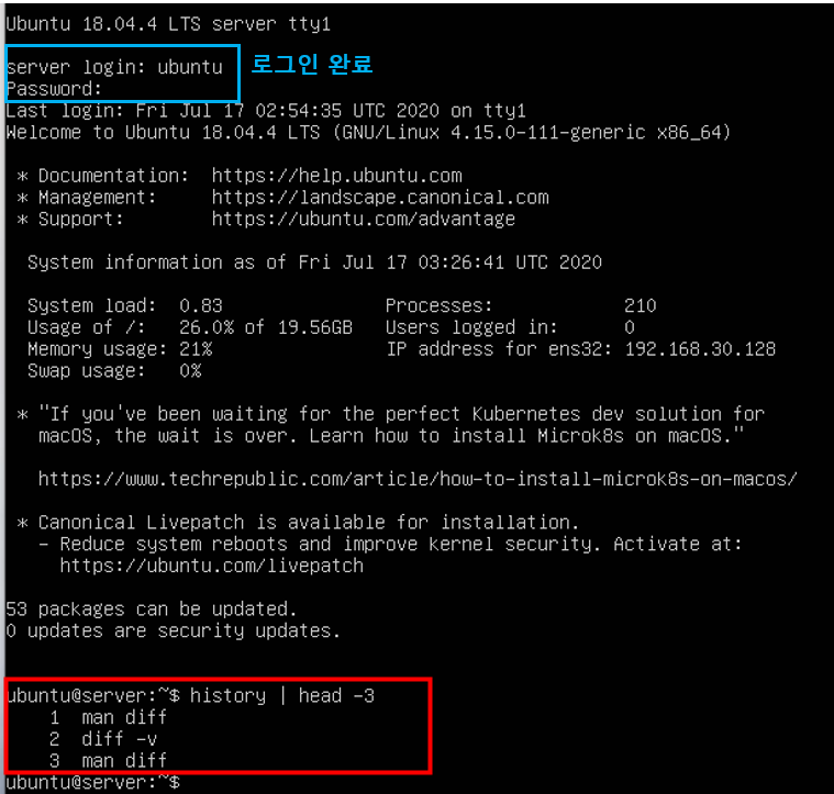 두 번째 전에 친 명령어를 잘 불러오는 것을 확인할 수 있어요.