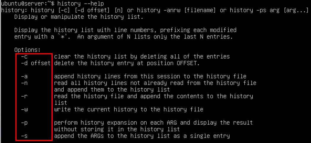 가장 중요한 건 사용법이죠. history에서 사용가능한 옵션들을 먼저 살펴봅시다.